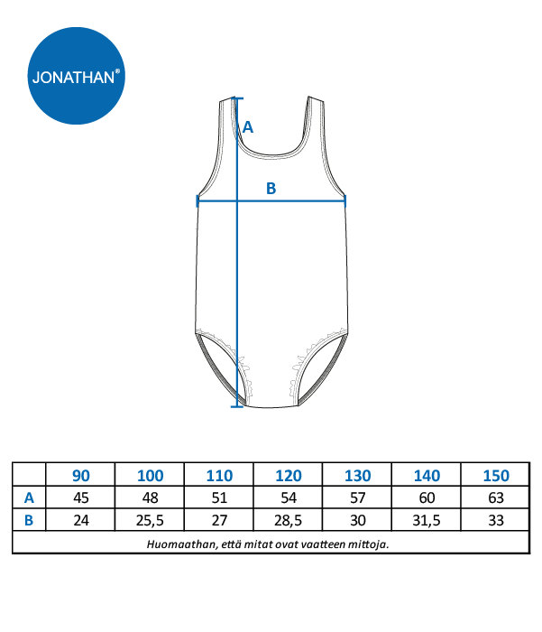 Jonathan aurinkosuoja uimapuku. Hihattomassa uimapuvussa on hauska kuosi ja leveät olkaimet, jotka pysyvät hyvin paikallaan.
