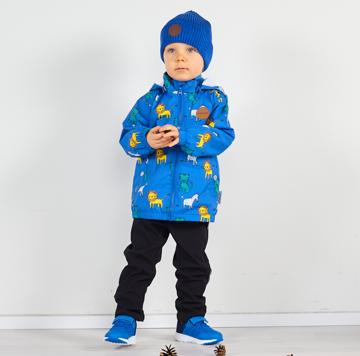 Tikruja ja seeproja! Tämä pirteä kevyttakki on paras vaihtoehto rentoon ulkoiluun välikaudella! Laadukkaista materiaaleista valmistettu takki pitää märän ja tuulen loitoilla. Takkia koristaa pirteä kuosi. Napitetut etutaskut ja heijastavat merkkilaput yksityiskohtina.