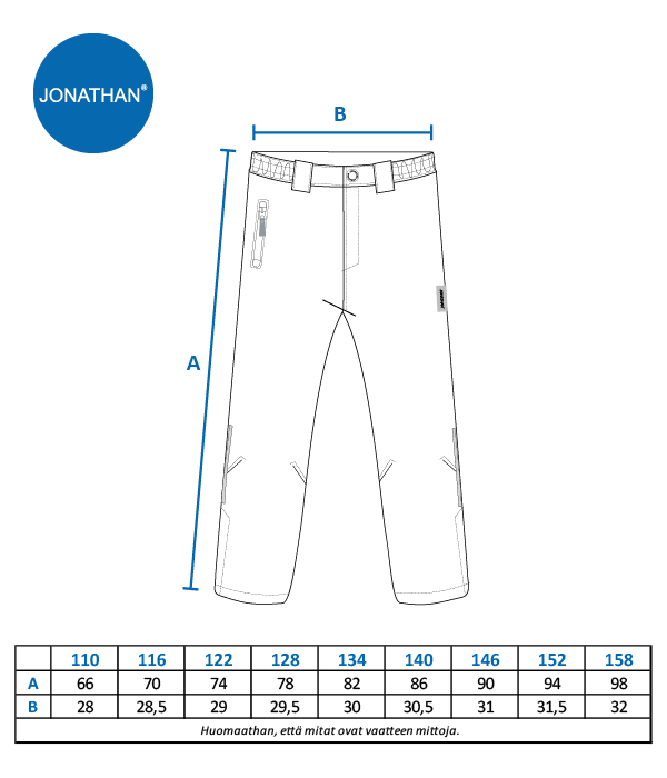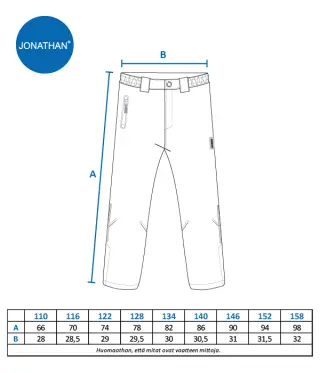 Jonathan softshell-housut välikauteen. Tuulenpitävät sekä vettä ja likaa hylkivät housut ovat nappi valinta ulkoiluun. Hengittävänä, notkeana materiaalina softshell on mitä mainioin valinta vauhdikkaisiin leikkeihin! Näissä housuissa on myös tilava reisitasku, jossa kaikki tarvittavat tavarat pysyvät menossa mukana.