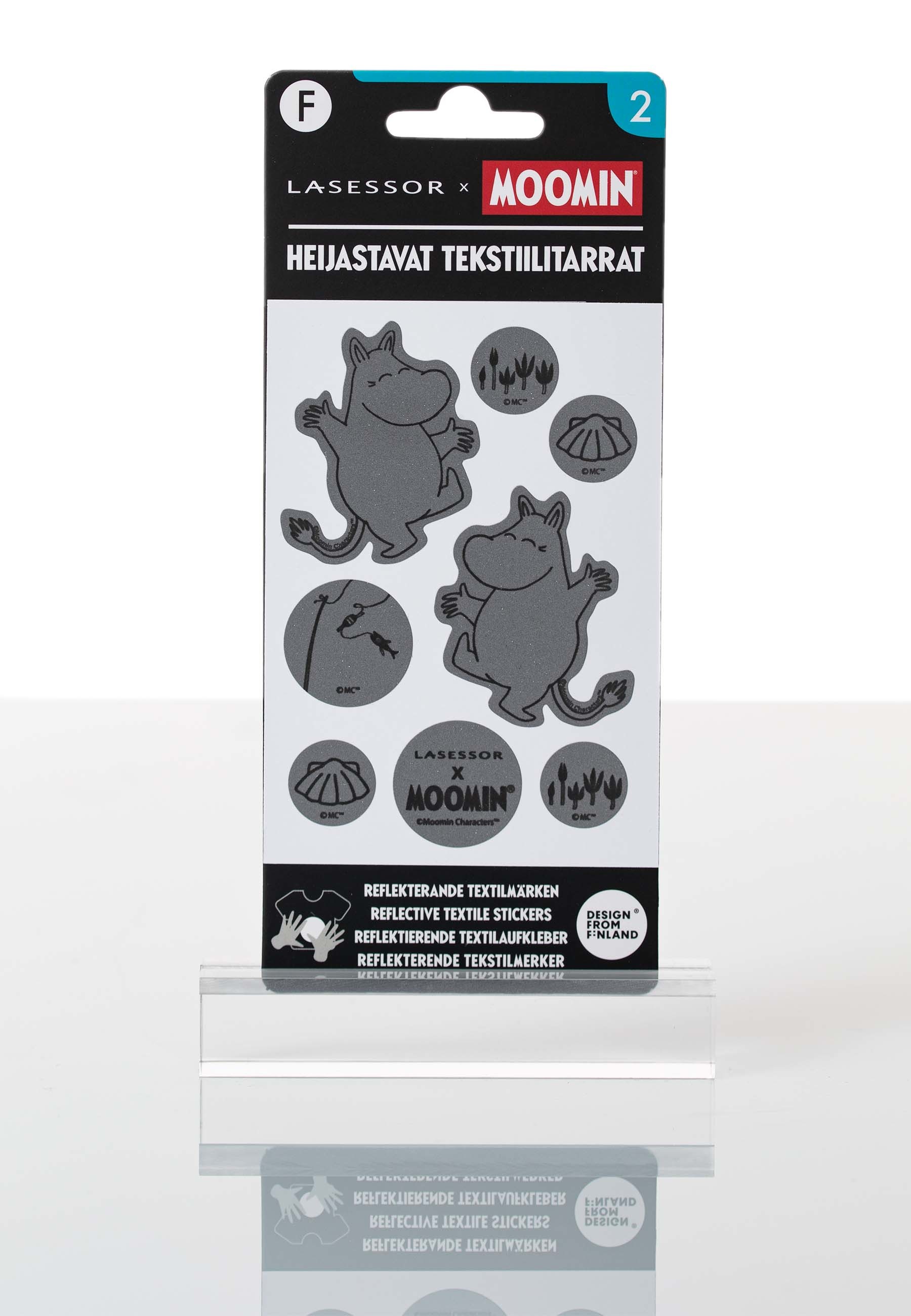 Lasessorin heijastavat Muumi tekstiilitarrat on kehitetty Suomessa pimeiden iltojemme piristykseksi. Muumien avulla voit tuunata vaatteesi ja asusteesi tutuilla hahmoilla ja samalla saada heijastavuuden tarjoaman suojan liikenteessä.