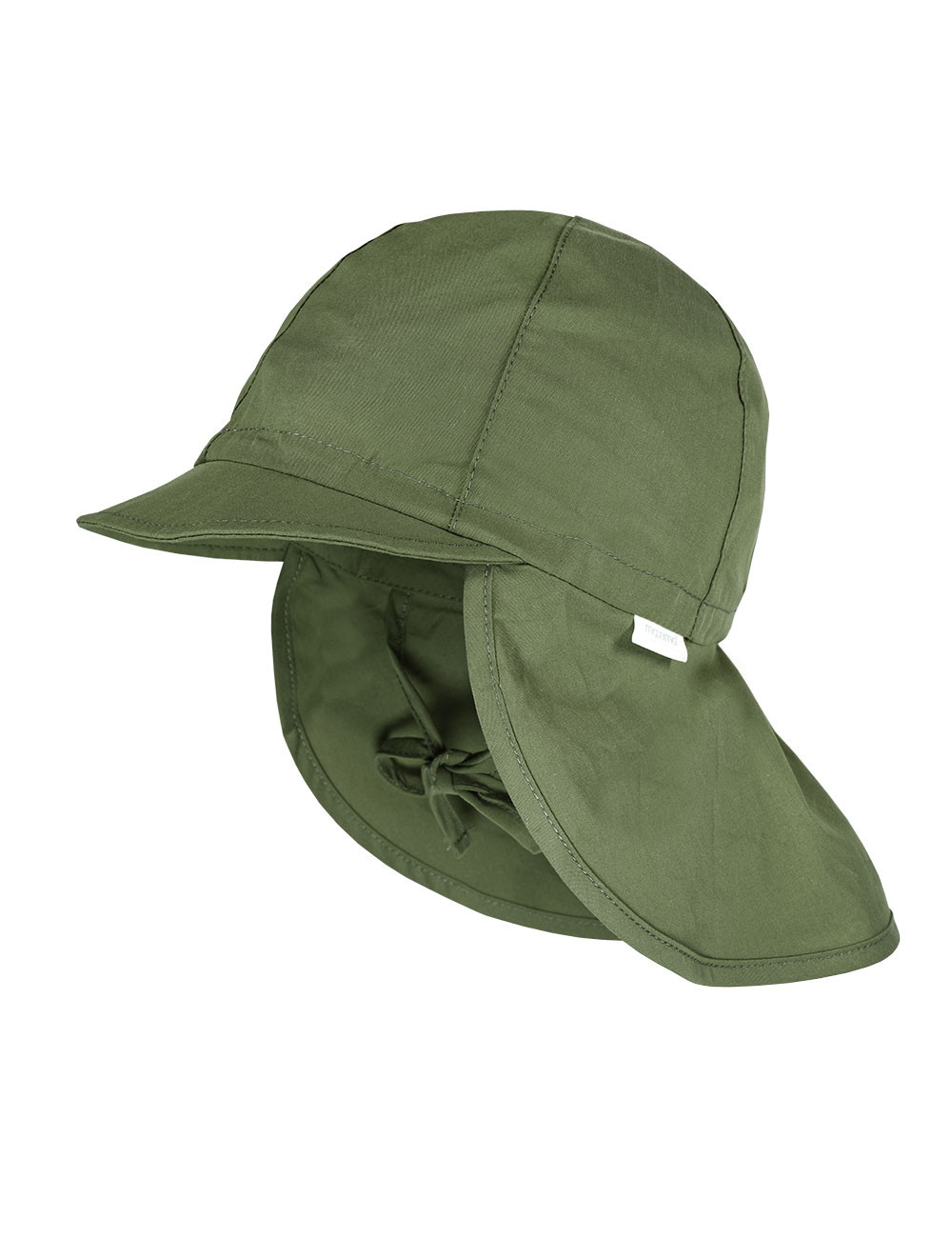 Maximo aurinkosuojahattu niskasuojalla ja lipalla. Hatussa on solmittavat nauhat.