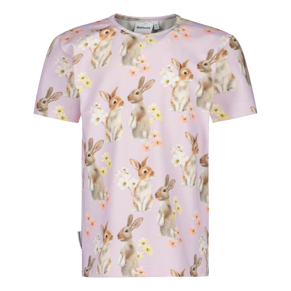 Metsola Cute Friends -t-paita on ihastuttava lasten t-paita, jossa leikkisä Henna Adelin suunnittelema Cute Friends -kuosi herää eloon. Lilalla pohjalla suloiset puput pomppivat kukkien keskellä.