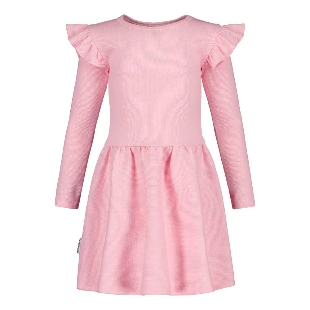 Metsola Frilla ribbimekko Pinkie-sävyssä on ihastuttava lasten pitkähihainen mekko, jossa yhdistyvät leikkisyys ja arjen käytännöllisyys. Raikas vaaleanpunainen Pinkie-sävy tuo asuun iloa ja väriä. Mekko on valmistettu pehmeästä ja joustavasta luomupuuvillaisesta ribbineuloksesta, joka tuntuu miellyttävältä ihoa vasten ja mahdollistaa vapaan liikkumisen. Olkapäiden frillayksityiskohdat tuovat keveyttä ja ripauksen juhlavuutta, sopien yhtä hyvin arjen seikkailuihin kuin erityisiin hetkiin.