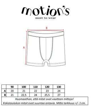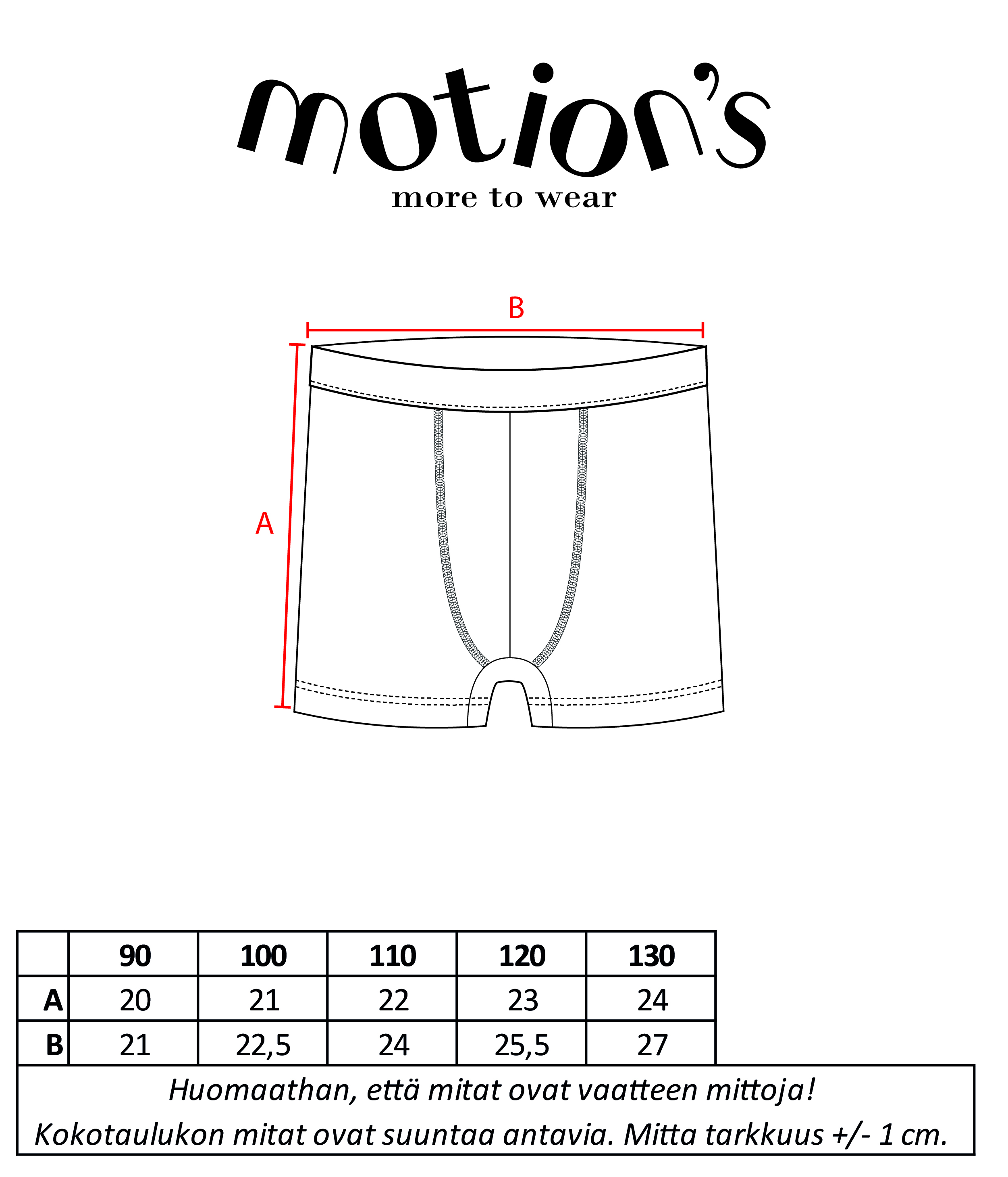 Motion's perusmalliset bokserit kahden kappaleen paketissa. Pehmeä materiaali ja mukavan joustava kuminauhavyötärö.