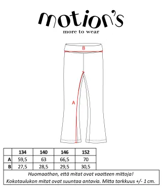 Motion's levenevälahkeiset collegeleggingsit ovat monikäyttöinen vaate arkeen! Housujen materiaali on pehmeää ja joustavaa luomupuuvillasekoitetta. Housujen sisäpinta on harjattu pehmeäksi ja niissä on joustava kuminauhavyötärö, joka ei kiristä. Yhdistä mieleiseesi Motion's yläosaan luodaksesi tyylikkään ja leikinkestävän asun.