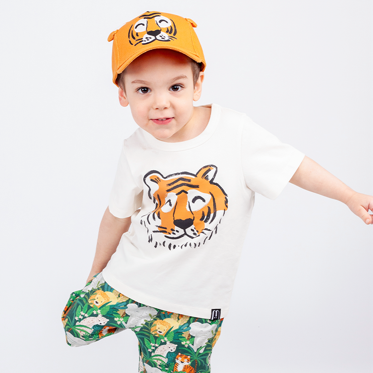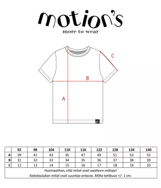 Upea Motion's T-paita, jossa hauska tiikeri painettuna rintaan. Paidan materiaali on pehmeää ja joustavaa luomupuuvillatrikoota, joka tuntuu miellyttävältä iholla. Tämä paita on rento perusvaate ja siten erinomainen valinta arjen menoihin! Leikin kestävän asukokonaisuuden saat yhdistämällä paidan esimerkiksi Motion's shortsien tai leggingseiden kanssa.