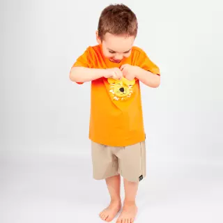 Hauska Motion's T-paita, jonka etutaskuun on kuvitettu leijona. Paidan materiaali on pehmeää ja joustavaa luomupuuvillatrikoota, joka tuntuu miellyttävältä iholla. Tämä paita on rento perusvaate ja siten erinomainen valinta arjen menoihin! Leikin kestävän asukokonaisuuden saat yhdistämällä paidan esimerkiksi Motion's shortsien tai leggingseiden kanssa.
