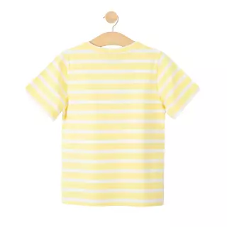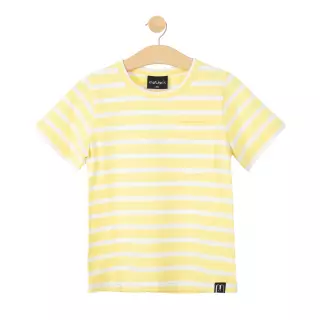 Ajattoman tyylikäs raidallinen Motion's T-paita. Tässä paidassa on hento keltaisen ja valkoisen yhdistelmä, sekä materiaali, joka on pehmeää ja joustavaa luomupuuvillatrikoota. Paita on rento perusvaate ja siten erinomainen valinta arjen menoihin! Leikin kestävän asukokonaisuuden saat yhdistämällä paidan esimerkiksi Motion's shortsien tai leggingseiden kanssa.