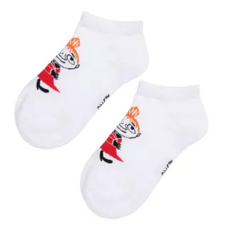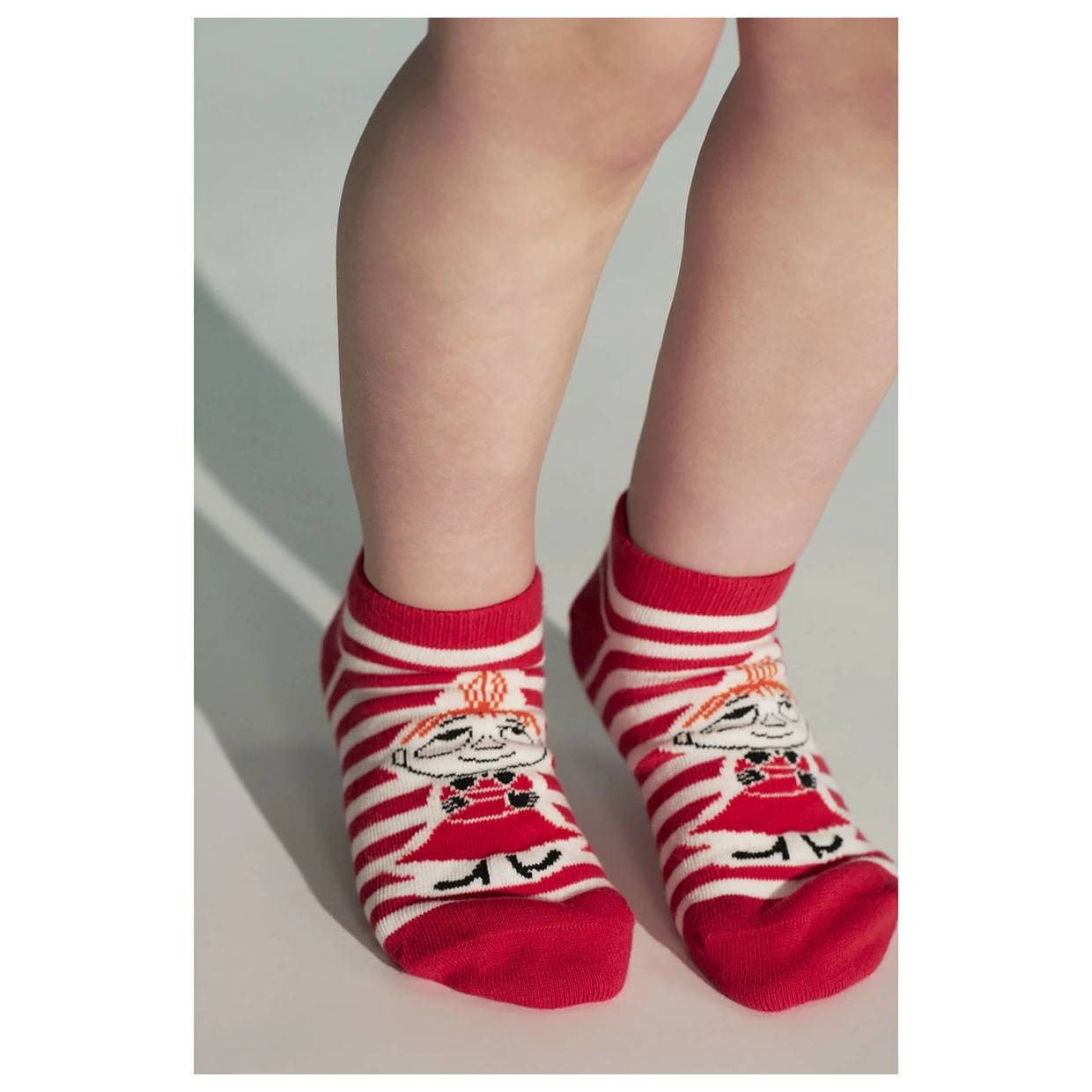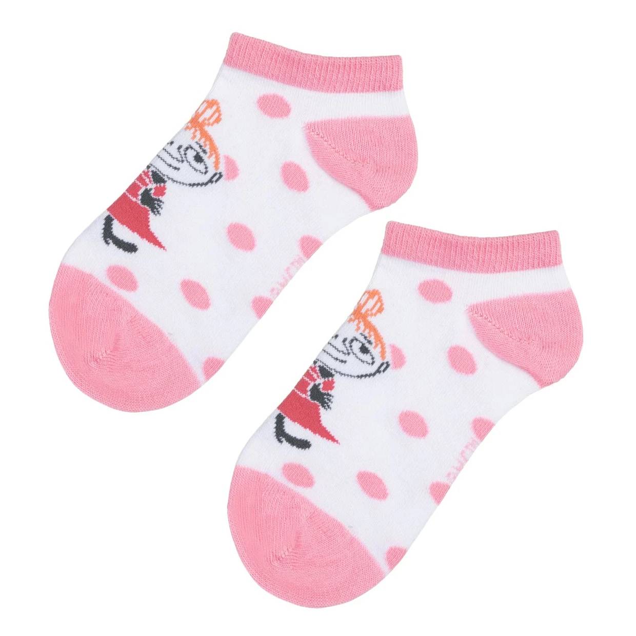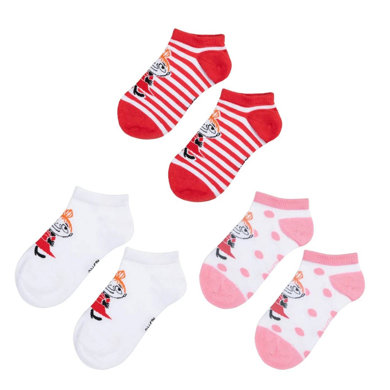 Lasten Muumi-aiheiset matalavartiset sukat ilahduttavat Pikku Myy -kuoseillaan. Sukat on valmistettu pehmeästä ja joustavasta puuvillasekoitteesta, joka tuntuu mukavalta jalassa. Pakkaus sisältää kolme paria sukkia eri väreissä: punavalkoiset, valkoiset sekä pinkkivalkoiset, joissa on ihastuttava Muumilaaksosta tuttu Pikku Myy! Suunniteltu Suomessa.