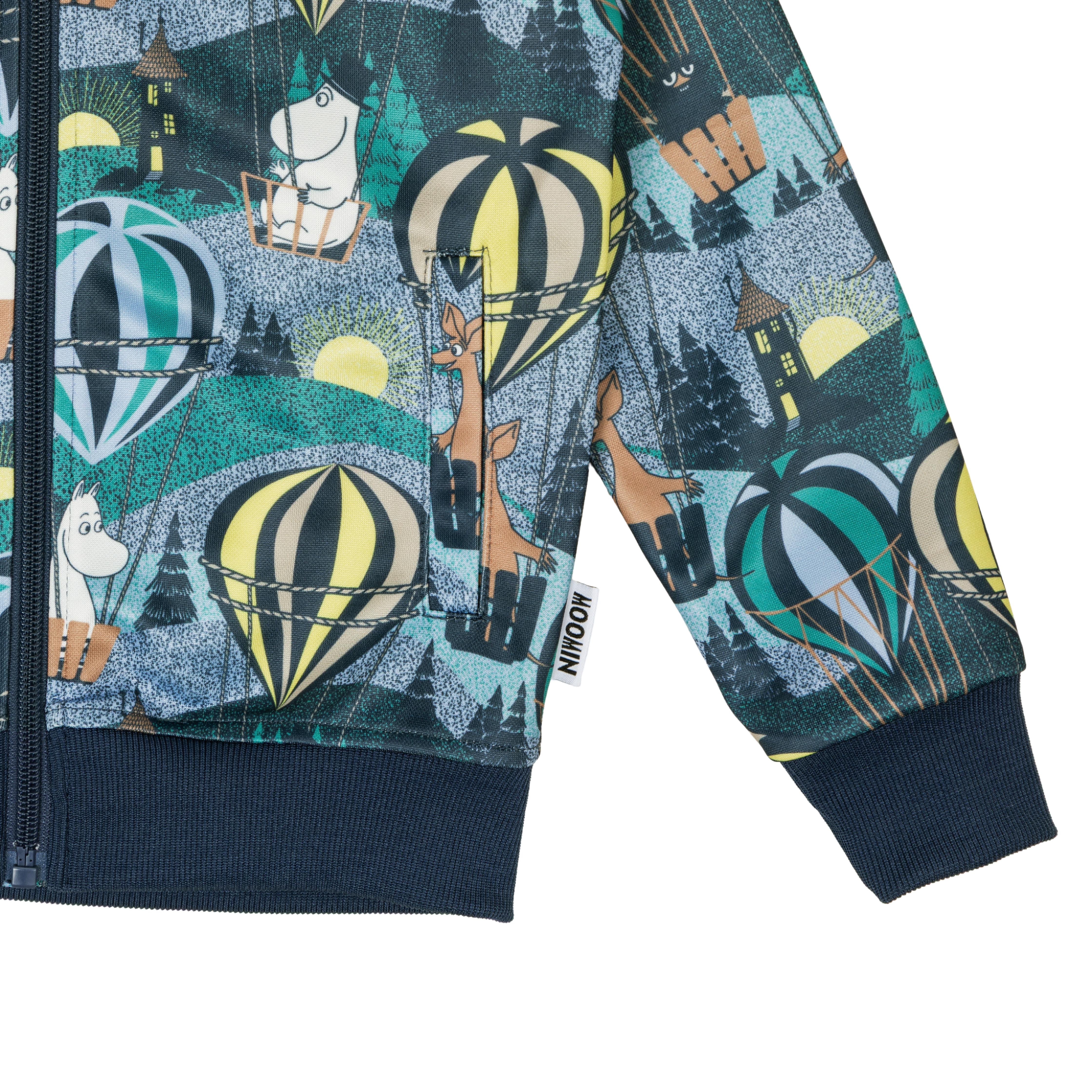 Sinisen sävyinen lasten Muumi-aiheinen verkkatakki tunnelmallisessa Aamulento-kuosissa. Verryttelytakissa on vetoketju ja taskut ja se on valmistettu liukaspintaisesta polyesteristä, joka on helppo pitää puhtaana sekä on mukava päällä koko päivän. Pääntiessä, hihansuissa ja alareunassa on joustavat resorit. Suunniteltu Suomessa.