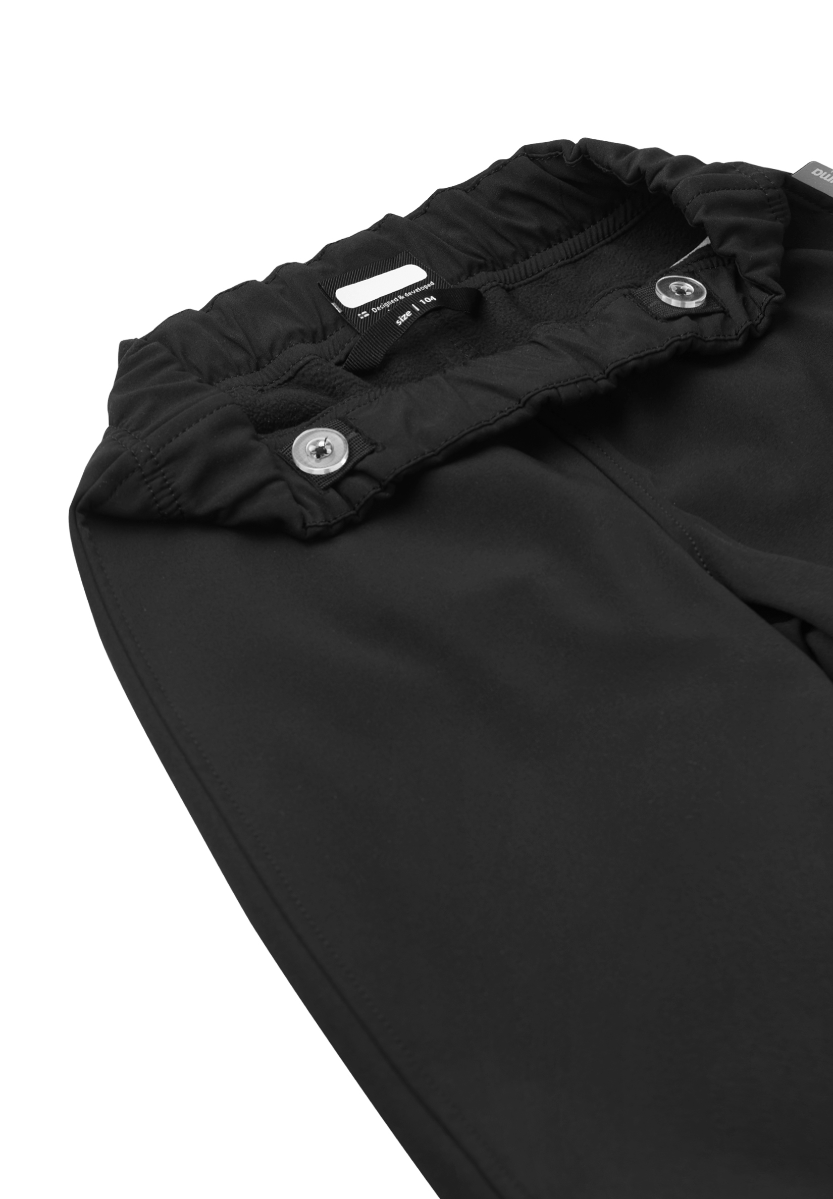 Nämä tuulenpitävät ja hengittävät lasten softshell-housut on valmistettu suositusta vettä ja likaa hylkivästä materiaalista. Joustavan ja säädettävän vyötärönauhan ansiosta paras istuvuus löytyy helposti. Lisämukavuutta tuo materiaalin sisäpuolen fleece ja joustavat lahkeensuut.