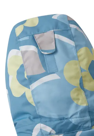 Kaikki saumat on teipattu vedenpitäviksi, ja kestävä materiaali varmistaa haalarin pitkän käyttöiän. Erittäin kestävät vahvikkeet ja suora, väljä malli takaavat liikkumisen vapauden, kun taas sileä polyesterivuori helpottaa pukemista ja lisää käyttömukavuutta. Haalarin huppu on turvallinen, irrotettava ja säädettävä. Säädettävät hihansuut joustavilla sisähihansuilla estävät lumen pääsyn sisälle. Vetoketjutaskut ja hiihtokorttitasku hihassa tarjoavat kätevää säilytystilaa, ja säädettävä vyötärö varmistaa hyvän istuvuuden. Säädettävät lumilukot lahkeensuissa pitävät lumen poissa kengistä, ja lahkeensuu voidaan kiinnittää nepparilla lumilukkoon. Tämä haalari pitää lapset lämpiminä, kuivina ja liikkeellä, olipa kyseessä pulkkamäki, hiihtoreissu tai leikki lumessa.