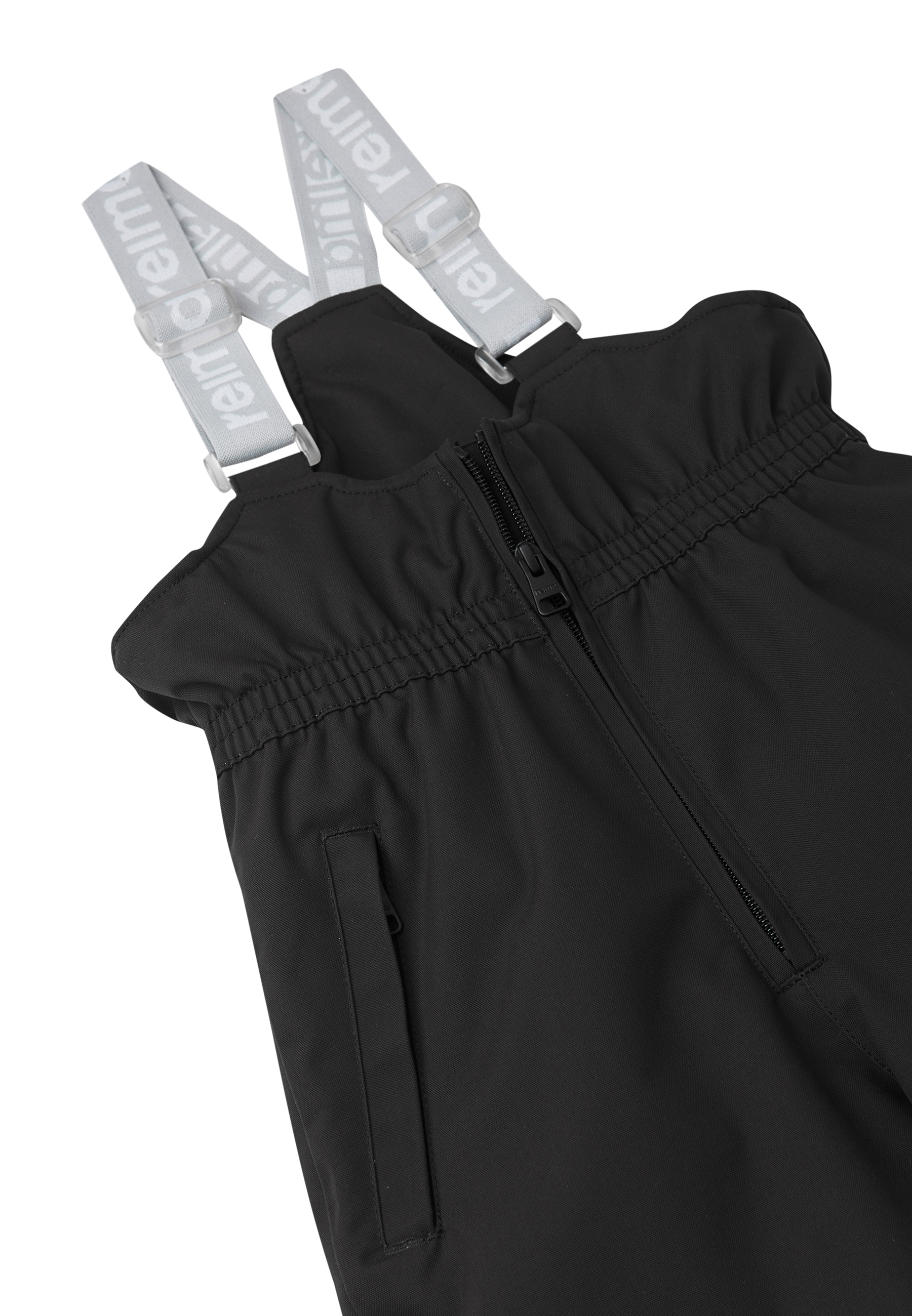 Vedenpitävät ja erittäin kestävät Reimatec Juoni toppahousut, joissa korkea vyötärö, henkselit ja säädettävät lahkeensuut.