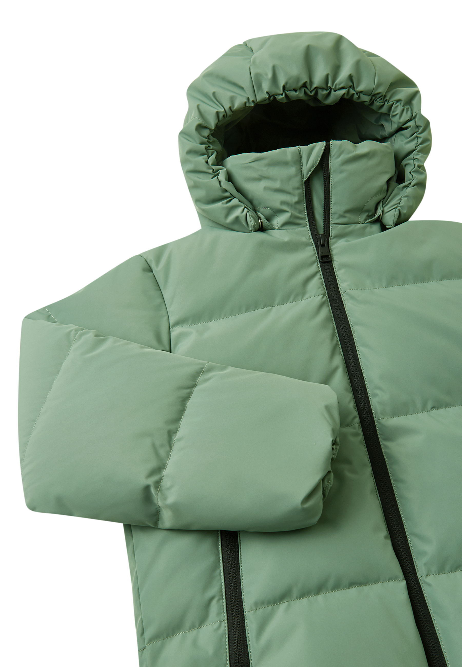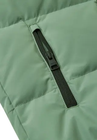 Reima Paimio-takin tuulen- ja vedenpitävä ja hengittävä materiaali auttaa pitämään lapsen kuivana, ja untuvaeristys (60 % untuva, 40 % höyhen, Fill Power 550) takaa ihanteellisen lämmön. Lisäksi päälliskankaan pinta on vettä ja likaa hylkivä. Sileä vuori helpottaa pukeutumista, ja turvallinen, irrotettava huppu suojaa lapsesi päätä kylmältä. Kaksi vetoketjutaskua tarjoaa kätevää säilytystilaa ja joustava helma sekä hihansuut tekevät takista entistä mukavamman päällä.