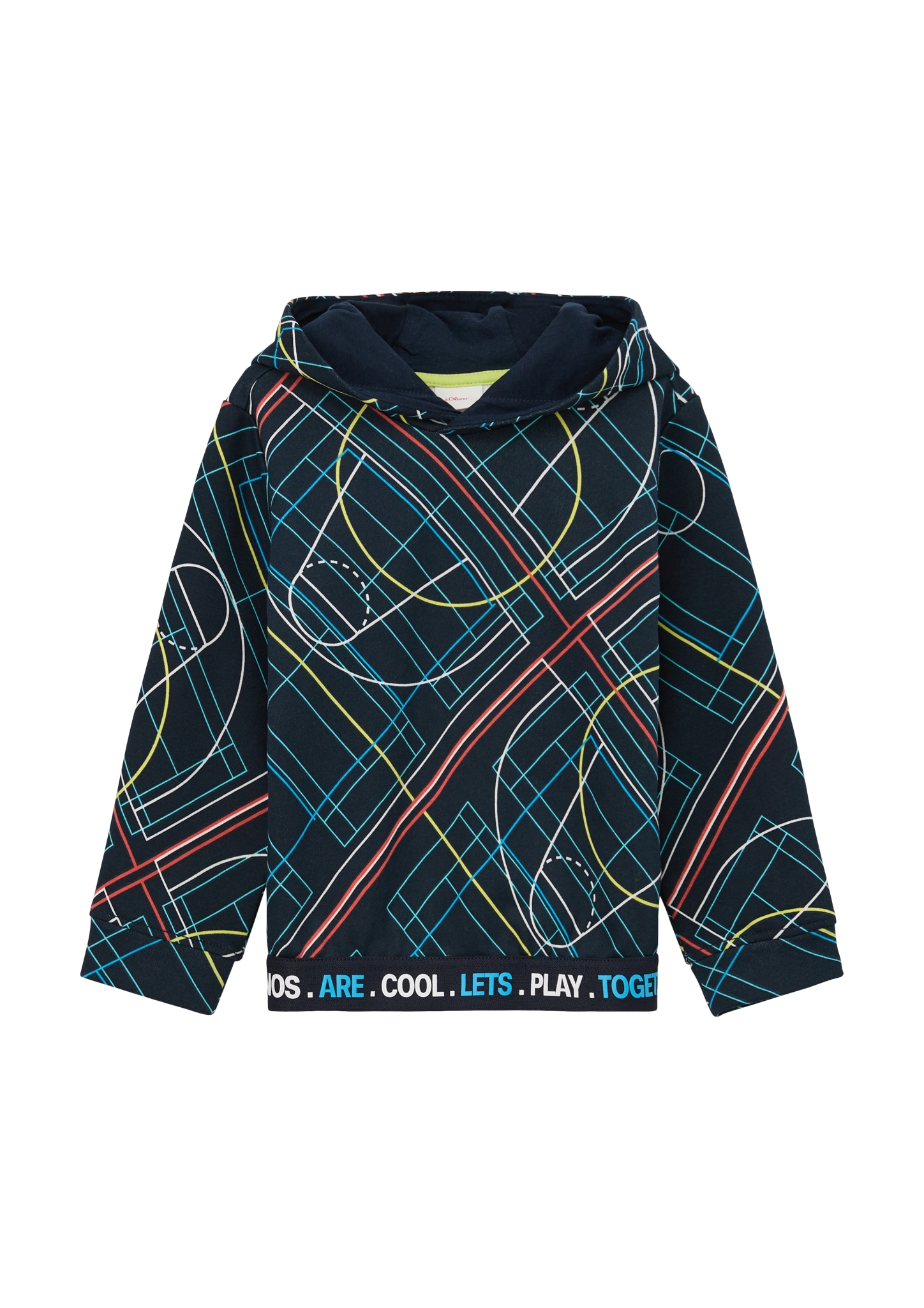 s.Oliver tummansinen collegehuppari hauskalla kuosilla. Hupparin alareuraa koristaa tekstiprinttinen resori.