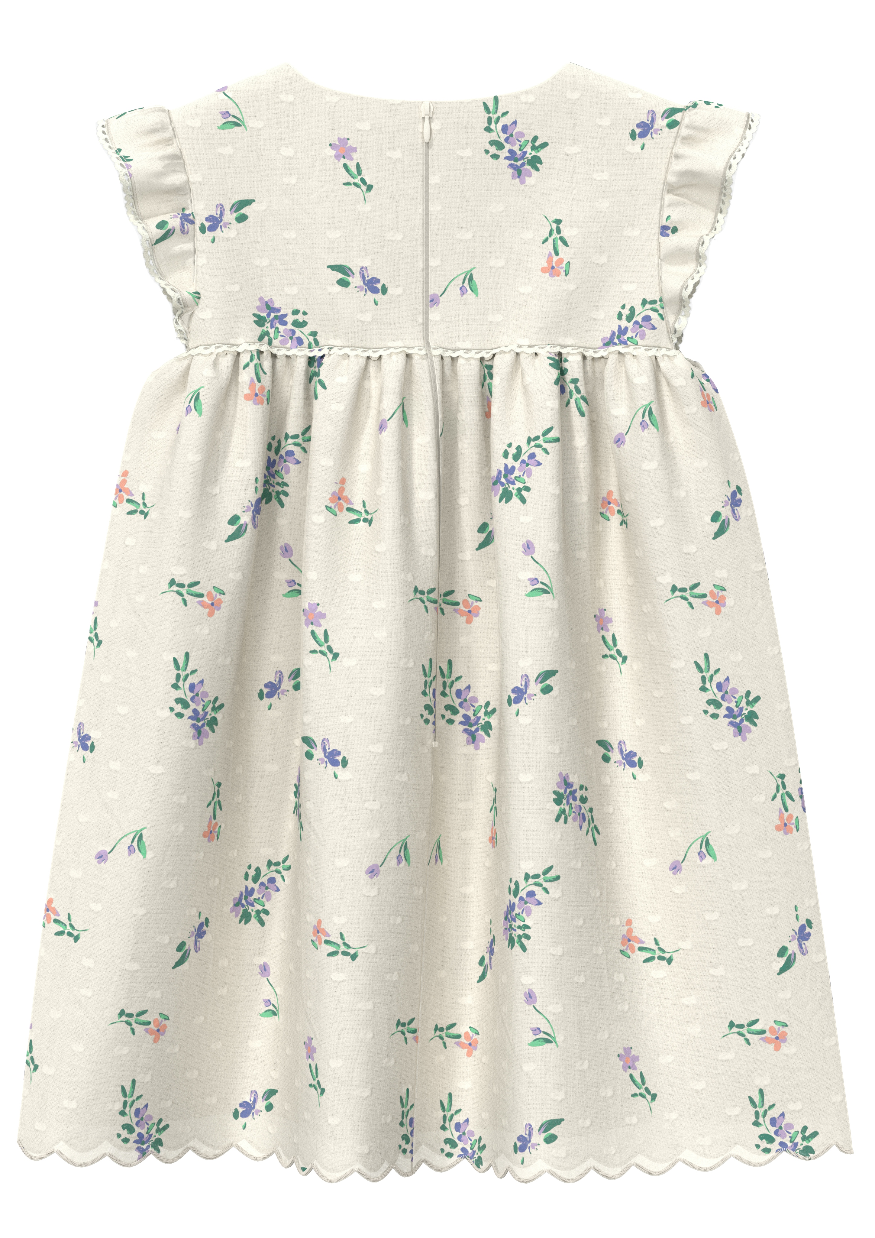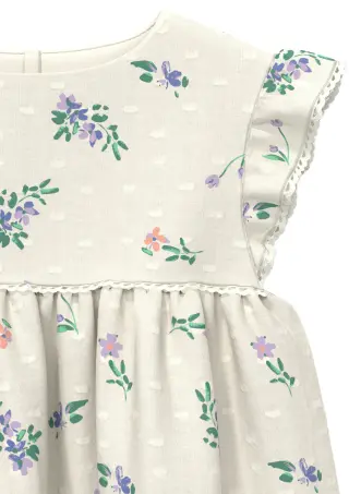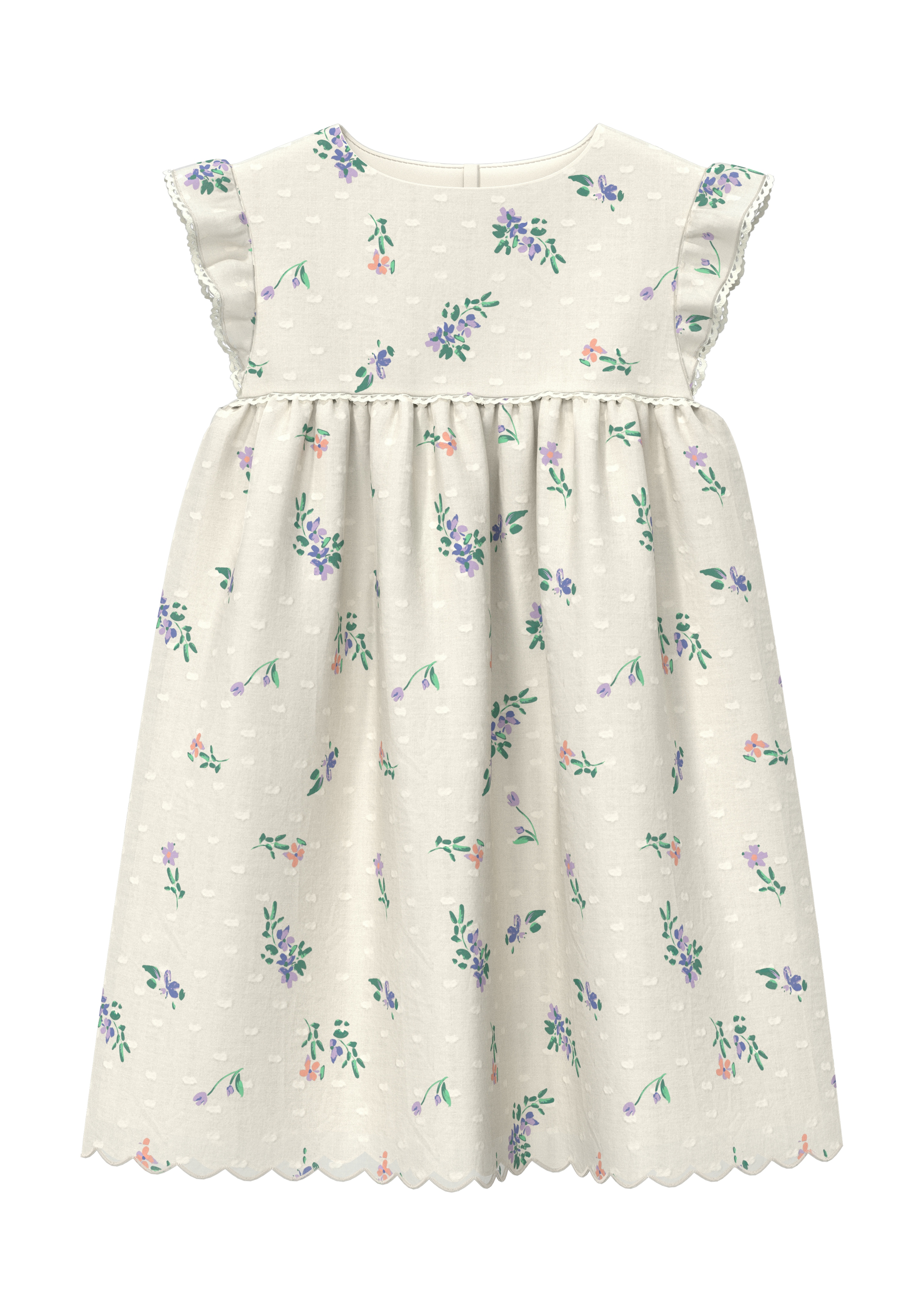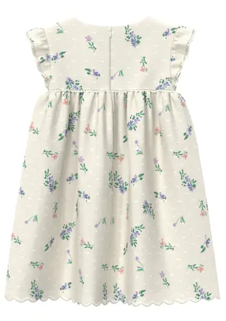 Lyhyt lasten mekko ihastuttavalla kuviolla ja koristeellisella aaltoilevalla reunuksella, joka herättää huomiota. Pehmeä kudottu kangas on mukavan tuntuinen, ja puuvillavuori takaa miellyttävän käyttömukavuuden. Leveä helma ja kerätyt yksityiskohdat luovat leikkisän siluetin. Täydellinen mekko juhliin, perheenmenoihin ja muutenkin aurinkoisiin päiviin puistossa.