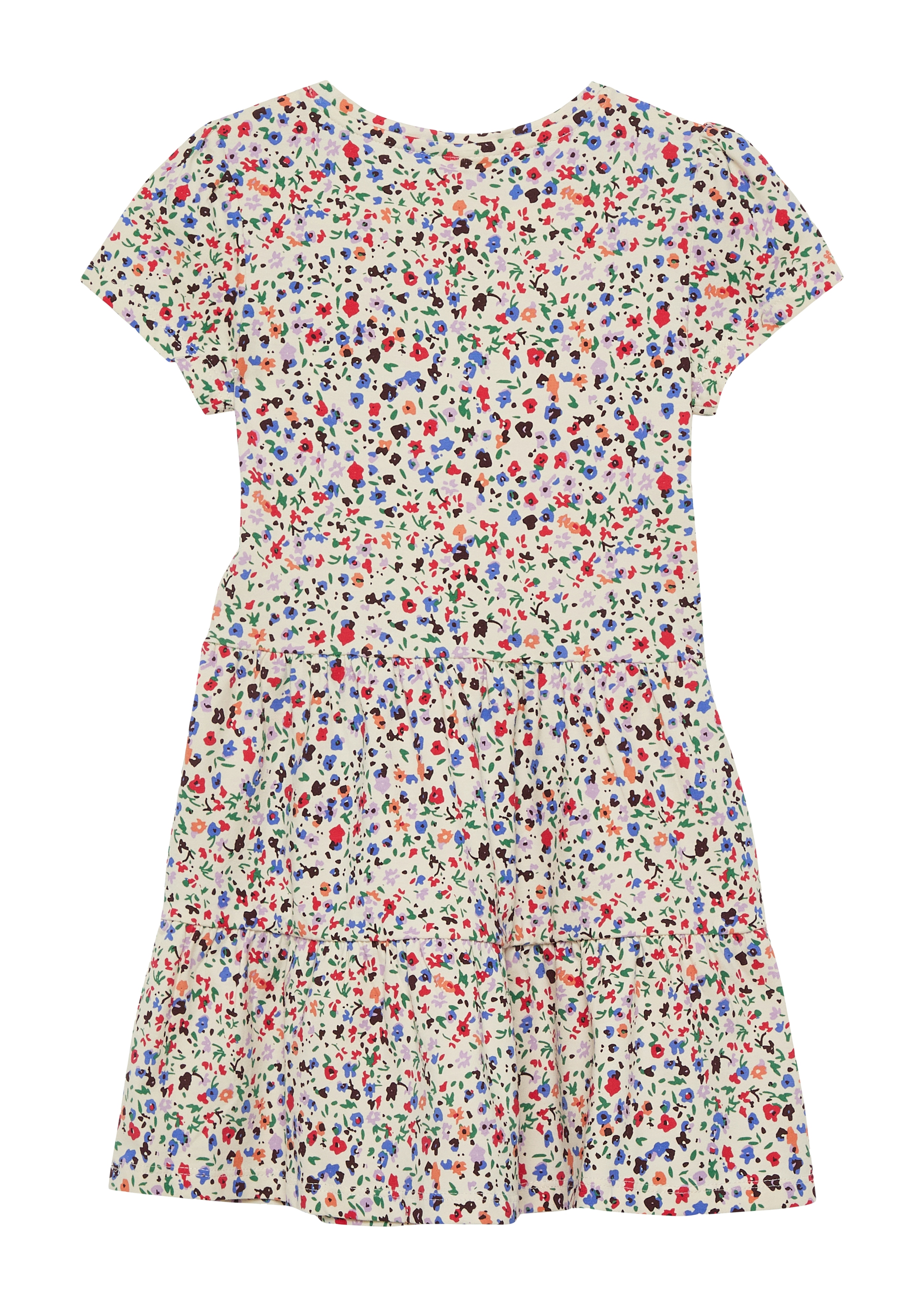 Pyöreä pääntie ja kevyesti laskeutuvat kerrokset tekevät mekosta täydellisen valinnan juhliin, perhejuhliin ja aurinkoisiin viikonloppuihin.
