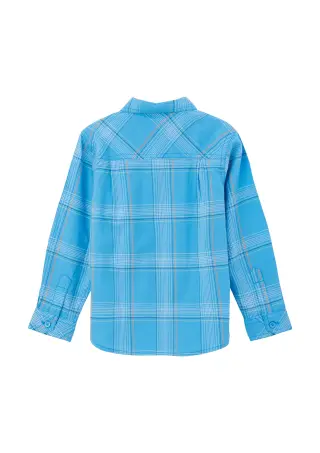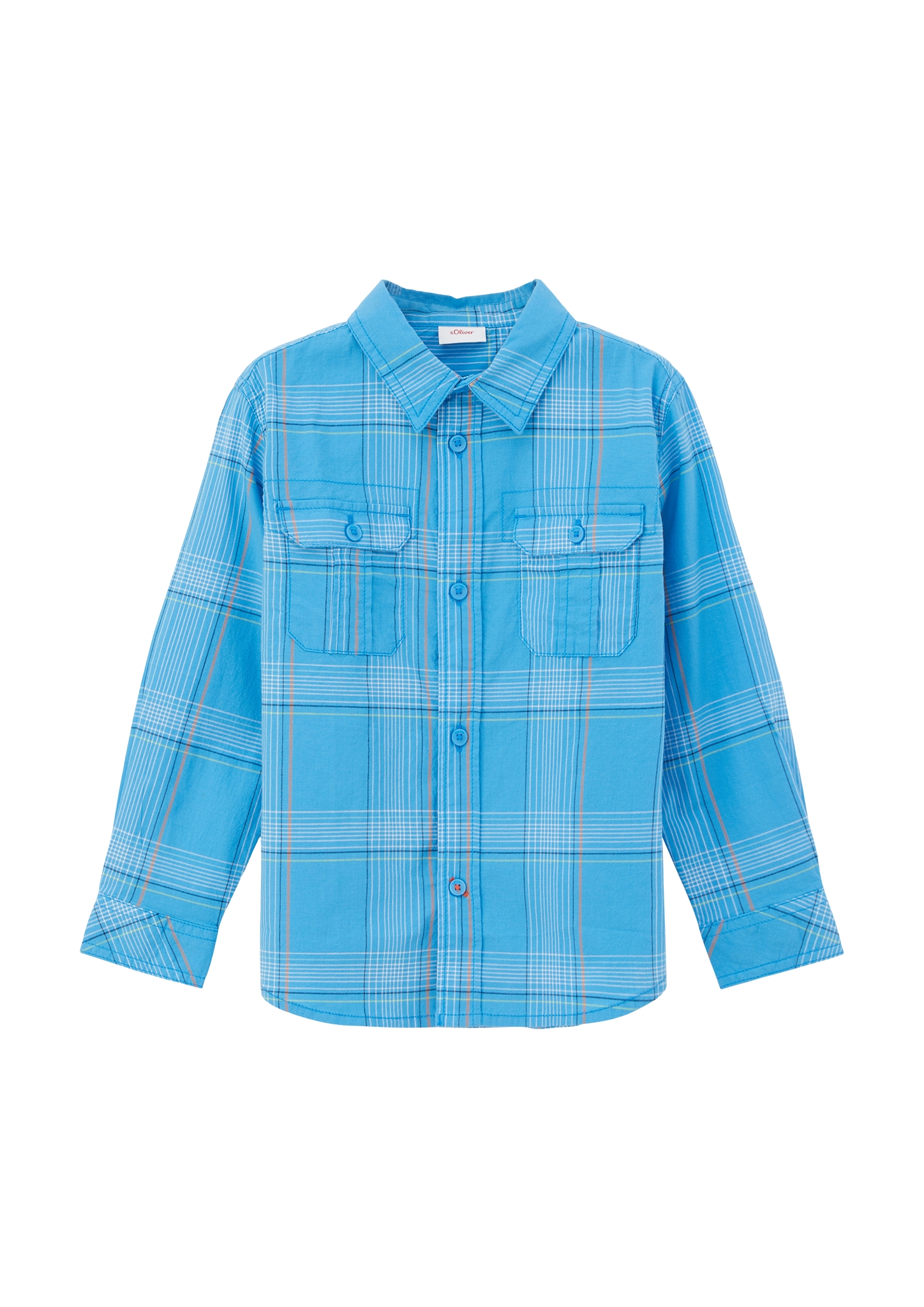 Ruutukuvioitu kauluspaita s.Oliverilta. Kauniin sinisessä paidassa on nappikiinnitys, ja edessä kaksi nappikiinnikkeistä rintataskua.