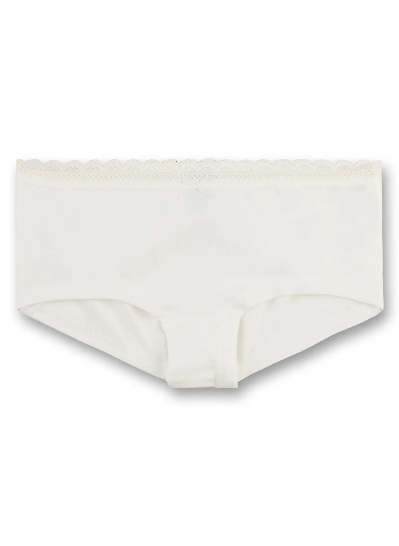 Hurmaavat luonnonvalkoiset Sanetta alushousut tytöille. Mukava puuvilla-modaali kangas on ilmava ja mukava iholla, sekä pitsireunus viimeistelee hipsteri alushousujen tyylin. Valmistettu Euroopassa.