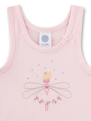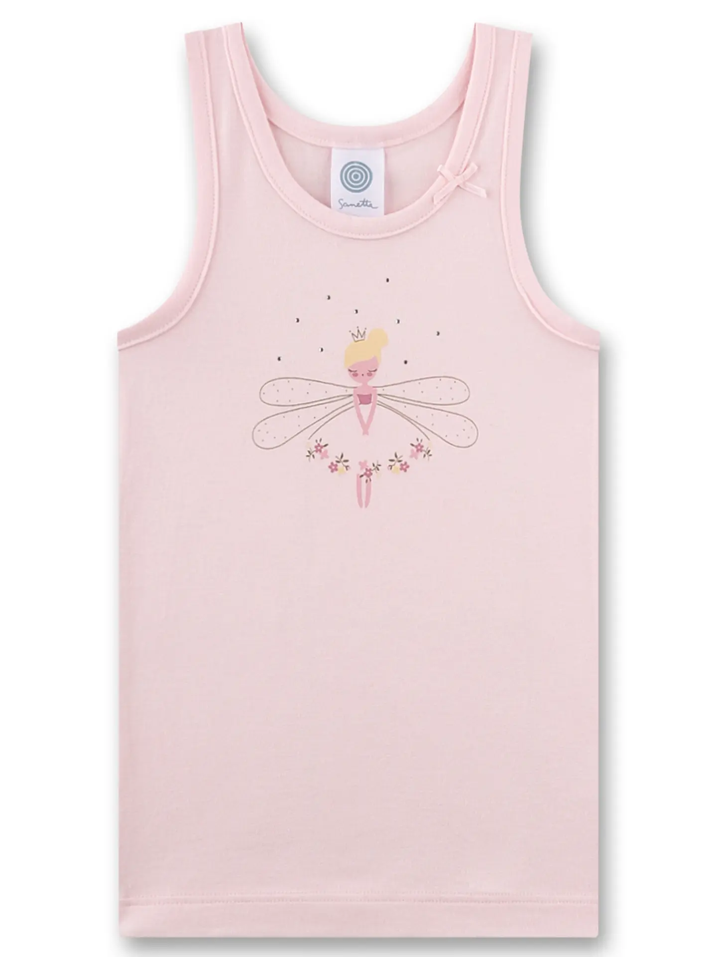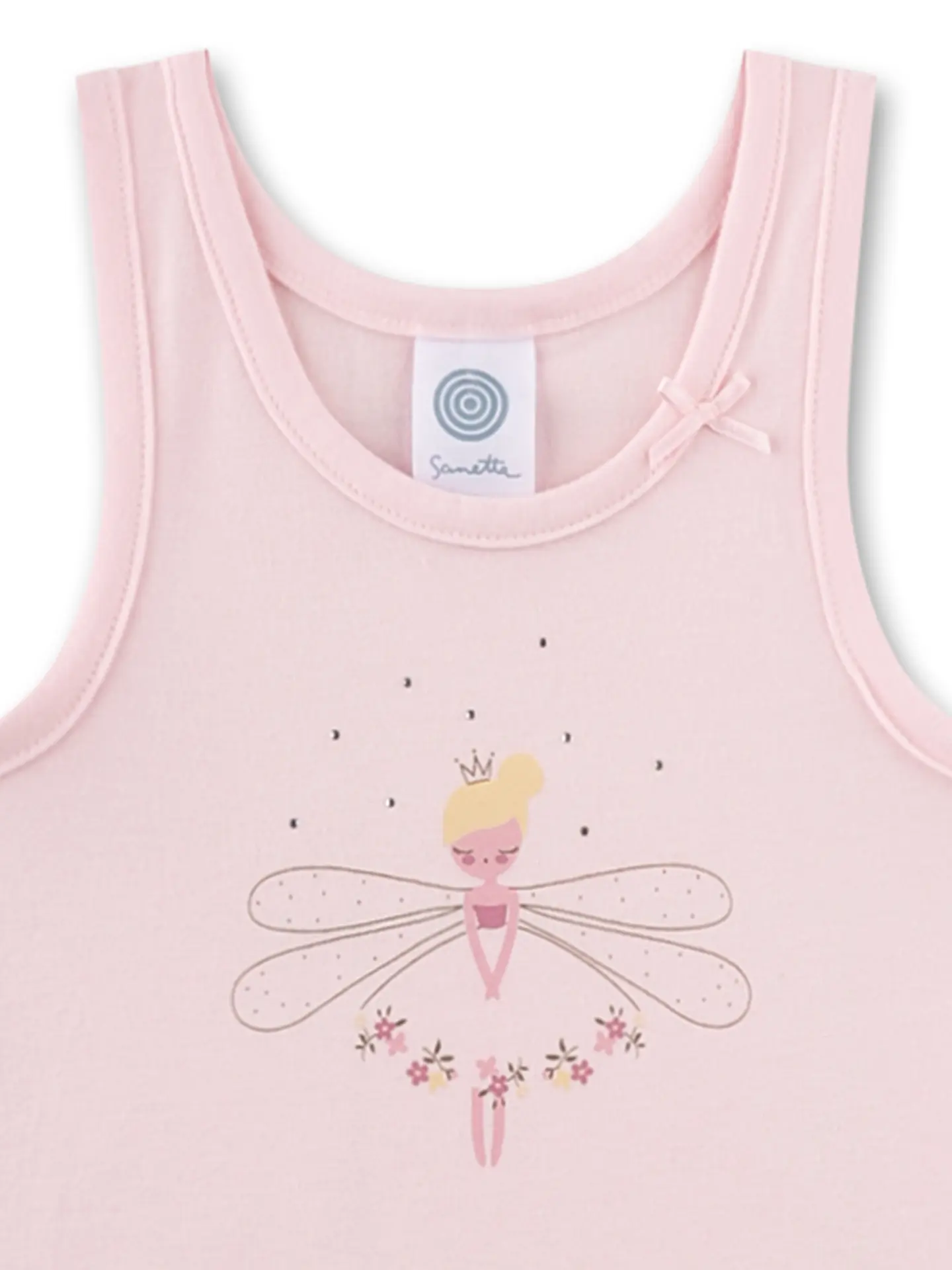 Vaaleanpunainen Sanetta aluspaita keijukaiskuviolla. Hellävarainen iholle, mukava ja täydellinen pienille keijuille.