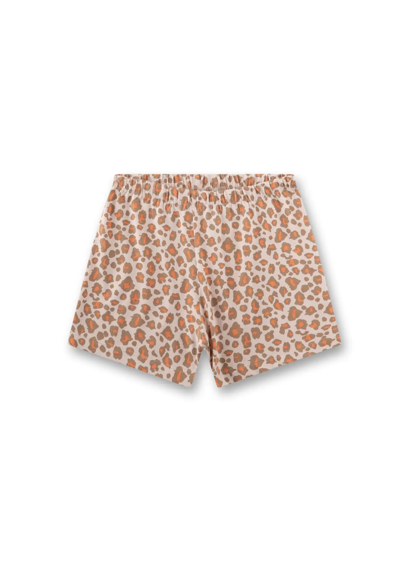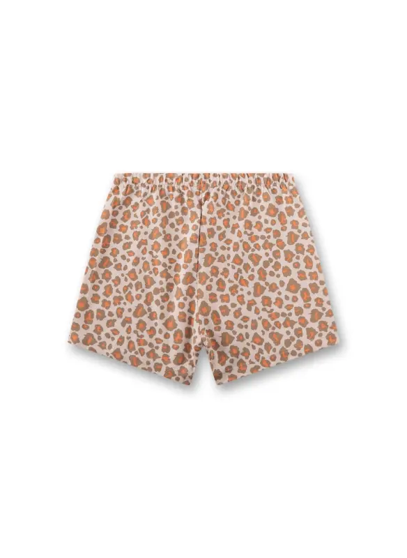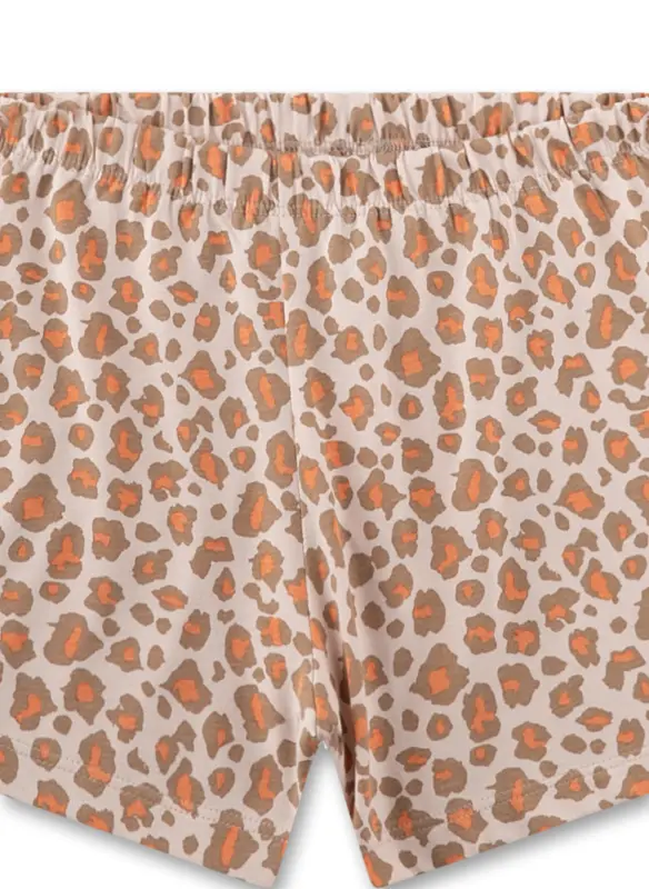 Kevyet Sanetta yö shortsit. Erityisen mukavat lämpimiin öihin, sekä mukaviin koti-iltoihin. Trendikäs leopardi kuviointi oranssin ja beigen värissä tuo tyyliä pikkuisen yöasuun. Valmistettu Euroopassa.