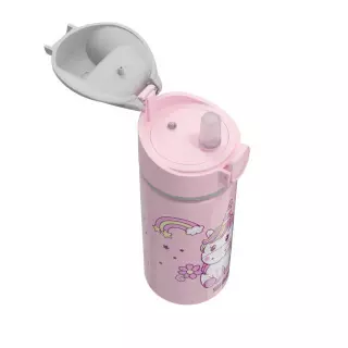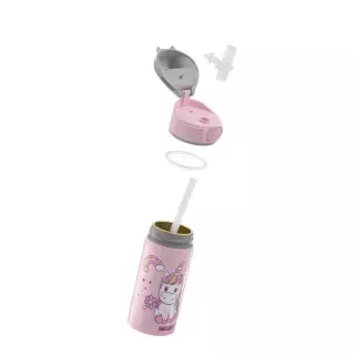 Juomista helpottaa käytännöllinen pilli sekä sitä suojaava kansi, joka pitää suukappaleen puhtaana. Pulloa voi käyttää myös ilman pilliä. Kansi avautuu helposti nappia painamalla, joten se sopii erinomaisesti pienille käsille. Be happy and stay hydrated!