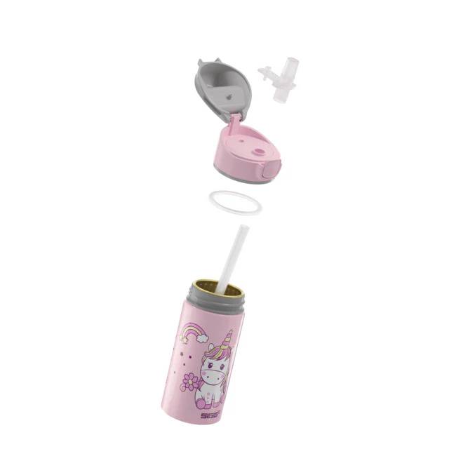 Tämä erittäin kevyt vaaleanpunainen SIGG Miracle Kids Happy Unicorn juomapullo on valmistettu kestävästä alumiinista ja on täysin myrkytön, BPA-vapaa ja EA-vapaa. Pullo on suunniteltu turvalliseksi, iskunkestäväksi ja helppokäyttöiseksi. Siksi SIGG juomapullo on täydellinen valinta arjen seikkailuihin, päiväkotiin ja retkille.