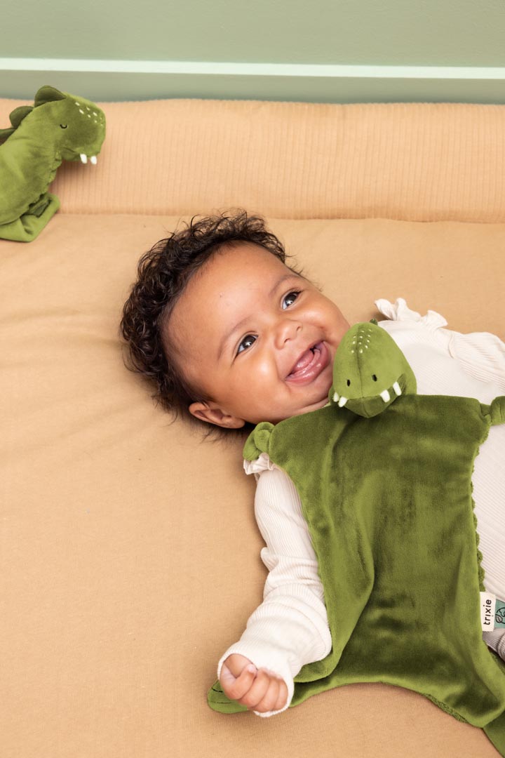 Pehmeä ja ystävällinen Trixie Mr. Dino Unilelu kulkee mukana kaikissa vauvasi ensimmäisissä seikkailuissa. Käytännöllinen solmu pitää tutin turvallisesti paikallaan, joten se ei pääse katoamaan. Ihastuttava vihreän värinen dinosaurus, joka on täydellinen lohduttaja arkeen, uneen ja mukaan otettavaksi.