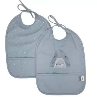 Iloa ja naurua ruokapöytään Mr. Sharkin kanssa! Tämä leikkisä Trixie kahden (2) kappaleen ruokalappusetti pitää lapsesi vaatteet puhtaina ruokailun, juomisen ja välipalojen aikana. Kätevä tasku kerää roiskeet ja murut talteen, joten sotku pysyy minimissä. Säädettävät nauhat takaavat hyvän istuvuuden lapsen kasvaessa. Sisältää 2 kappaletta ruokalappuja: harmaa ja vaaleansininen.