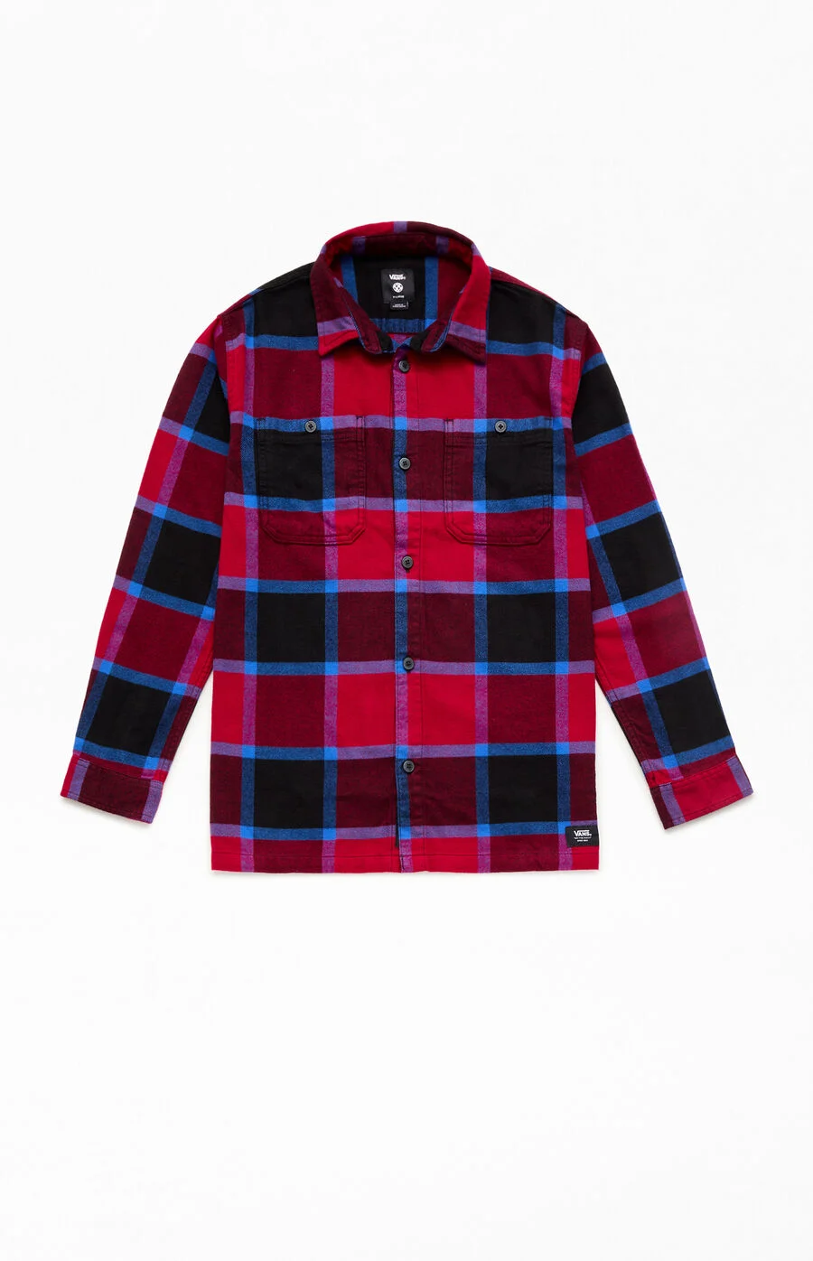 Vans Kids Larkspur ruudullinen pitkähihainen flanellipaita tarjoaa klassista tyyliä ja mukavan istuvuuden lapsille. Paidassa on pitkät hihat, perinteinen kaulus, nappikiinnitys ja ajaton ruutukuvio, mikä tekee siitä täydellisen lasten vaatekaapin peruspaitavalinnan. Yhdistä paita helposti farkkuihin, chinoihin tai shortseihin luodaksesi käytännöllisen arki- tai vapaa-ajan asukokonaisuuden.