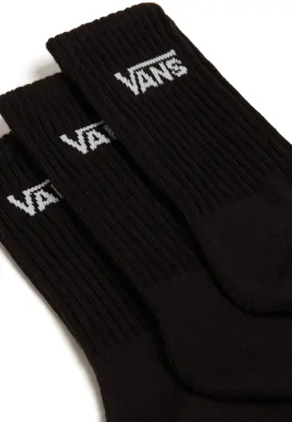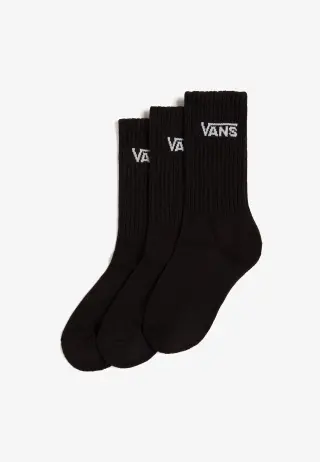 Klassiset ja mukavat mustat VANS Classic Crew -sukat lapsille ja nuorille. Paketissa on kolme paria, joissa jokaisessa on VANS-logo varressa. Hengittävät sukat pysyvät hyvin jalassa joustinneuleen ansiosta, eivätkä valu arjen tai harrastusten aikana. Täydellinen valinta koulupäiviin, vapaa-aikaan ja urheiluun.