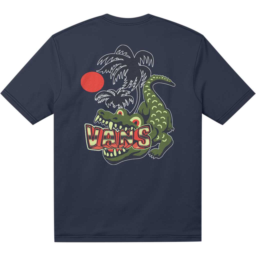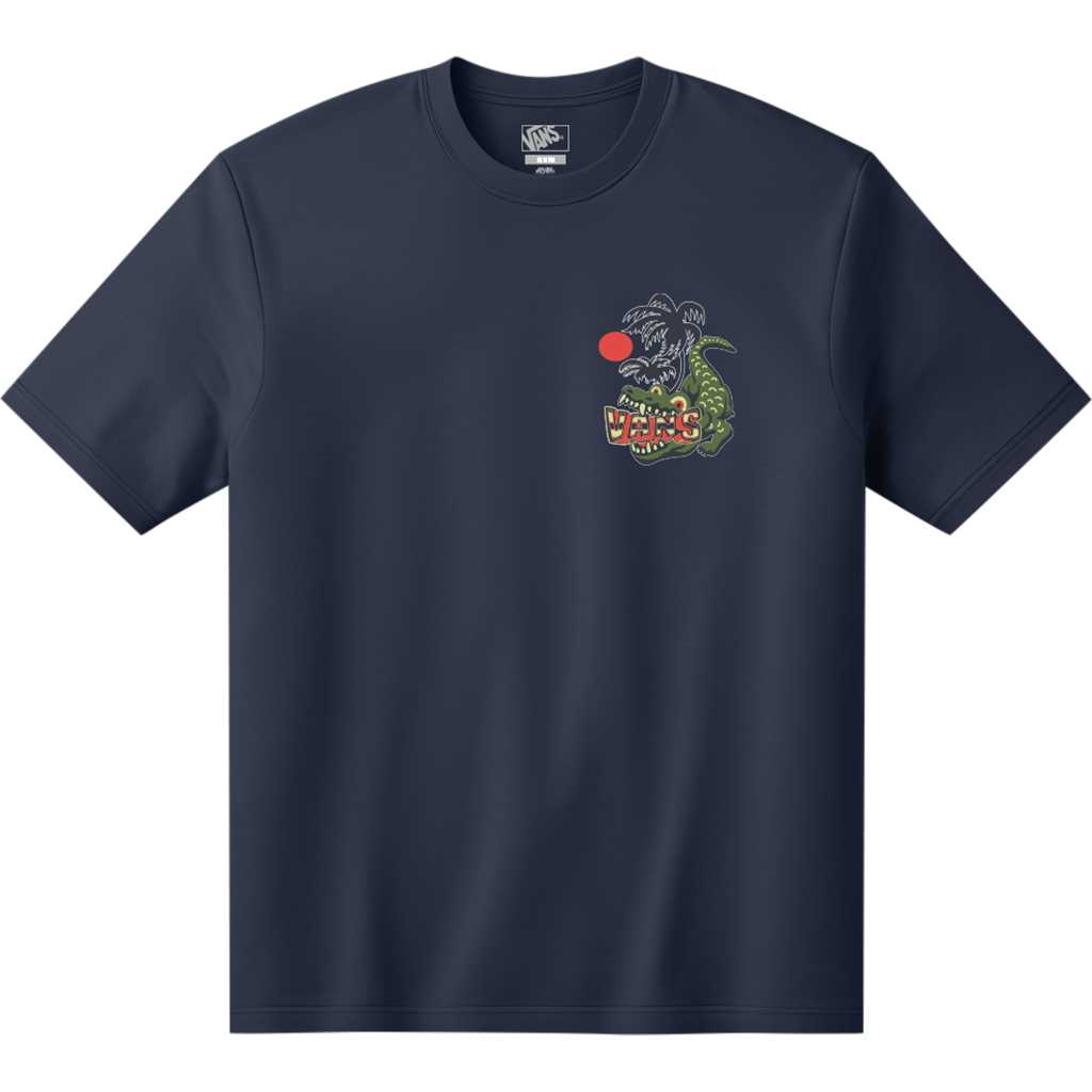 VANS T-paita Hangry Croc -kuvituksella tuo hauskaa ja ikonista streetwear-tyyliä lasten vaatekaappiin. Tummansininen lyhythihainen T-paita on valmistettu pehmeästä puuvillasta, ja siinä on klassinen pyöreä pääntie. Rintakehällä on pieni Hangry Croc -painatus ja selässä suurempi, näyttävä kuva samasta kuvituksesta. Täydellinen valinta koulupäiviin, viikonlopun seikkailuihin ja rentoon arkikäyttöön. Saatavana sekä taaperoiden että lasten koossa.
