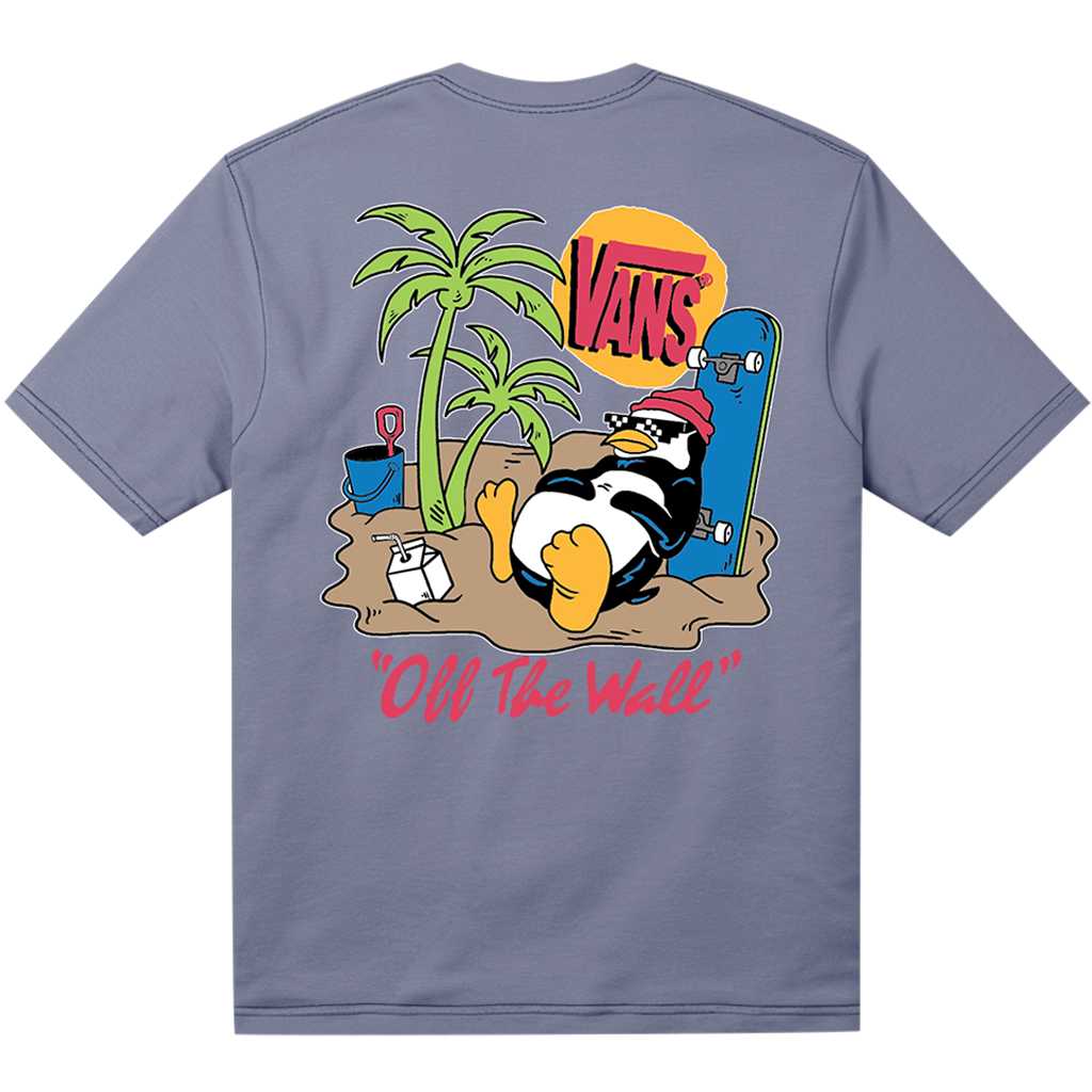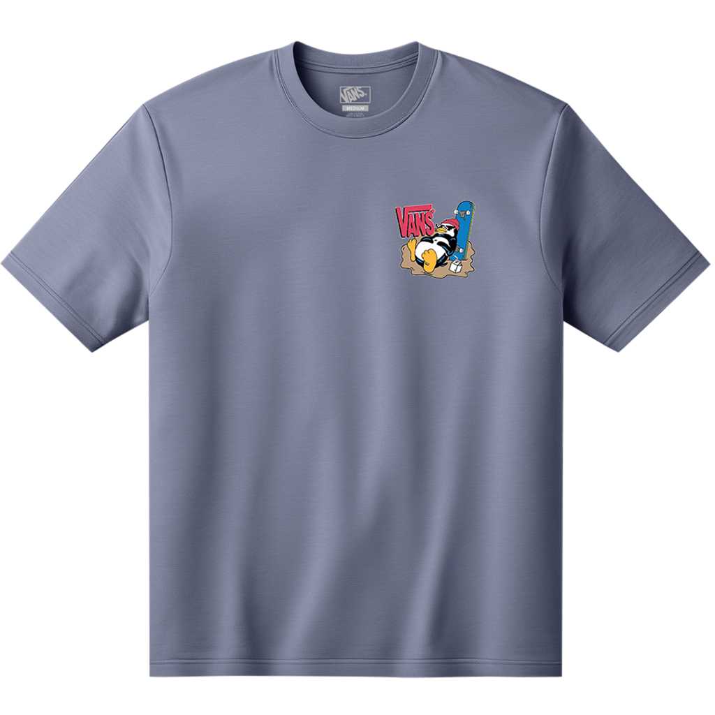 Vans Yolo Penguin T-paita tuo leikkisää ilmettä lasten arkiseen streetwear-tyyliin. Sinertävä lyhythihainen T-paita on valmistettu pehmeästä puuvillasta ja siinä on klassinen pyöreä pääntie. Rintakehällä on hillitty Yolo Penguin -painatus, ja selän suurempi kuva tuo paidalle persoonallisuutta. Helppo ja tyylikäs valinta kouluun, viikonloppuun ja rentoon arkikäyttöön.