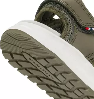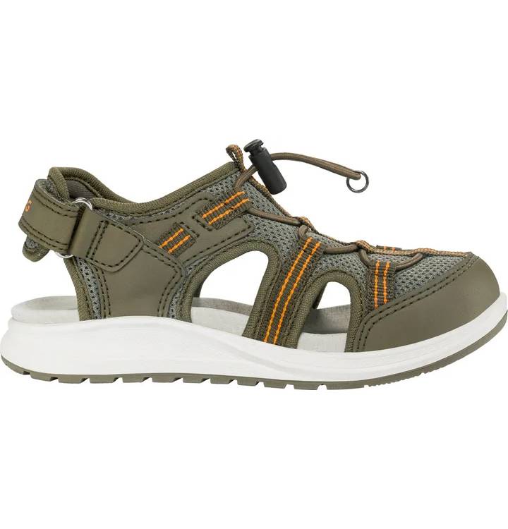 Pehmeä, mokkanahalla vuorattu sisäpohja ehkäisee kosteutta ja varmistaa hyvän ilmanvaihdon sekä umpikärki suojaa varpaita leikin aikana. Lapsiystävällisen pukemisen ja säädettävyyden takaamiseksi sandaaleissa on yksittäinen tarranauhakiinnitys kantaosassa sekä joustava pikanauhoitus. Kevyt EVA-välipohja vaimentaa askelia, ja luonnonkumista valmistettu ulkopohja tarjoaa varman pidon eri alustoilla.